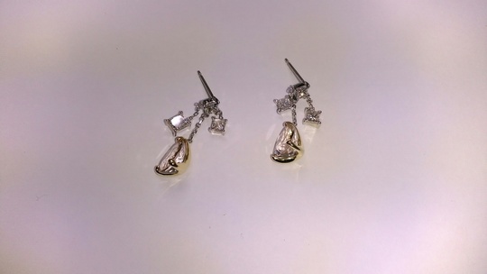 プラチナとK18のコンビピアス加工