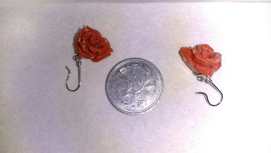 サンゴを2つお客様の持ち込み、ピアス加工依頼