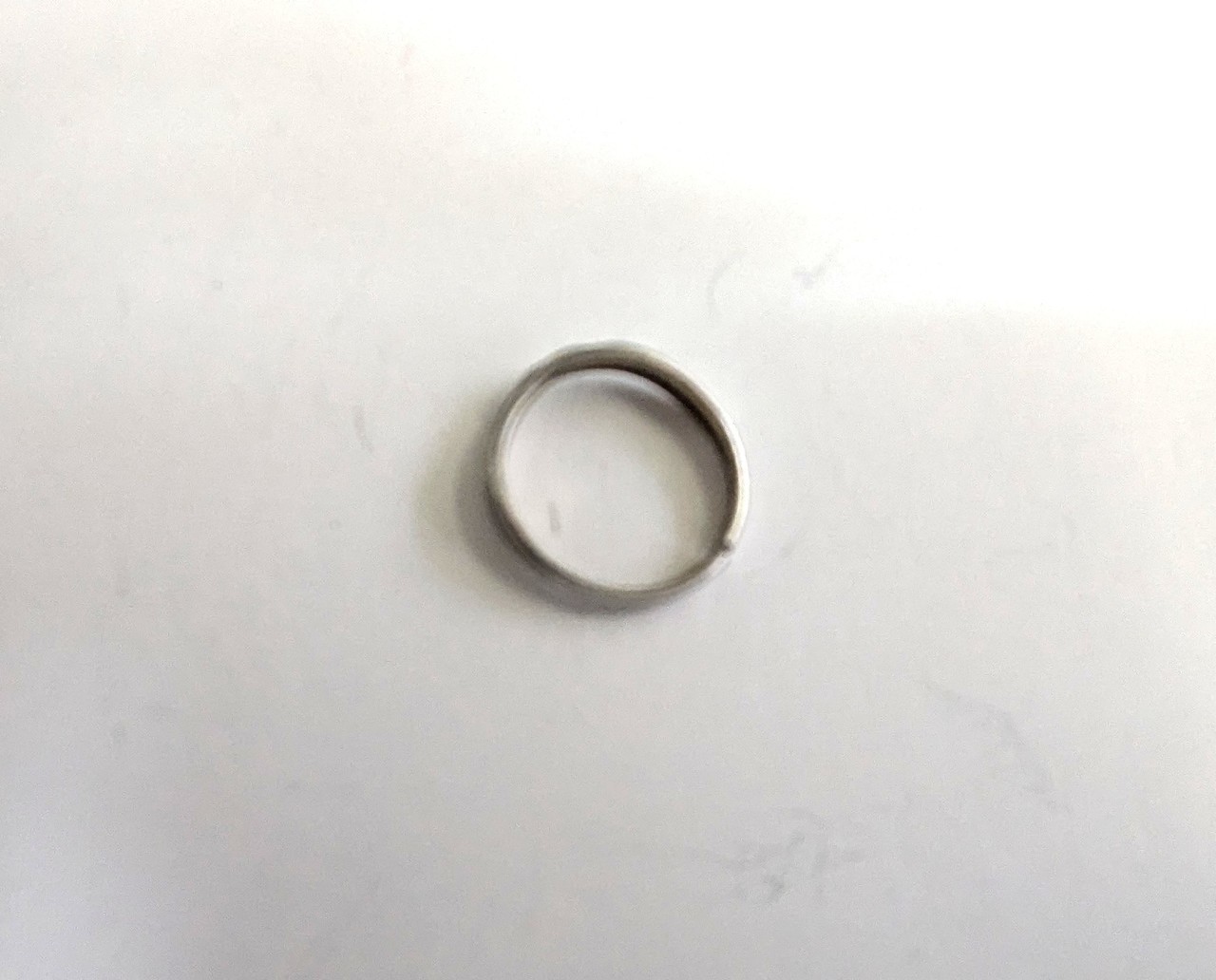 元の指輪サイズは#9でしたが、5~6年間の間つけっぱなしでいざという時抜けなくなった指輪でした。指輪をリングカッターで切断を致しましての修理依頼でした。